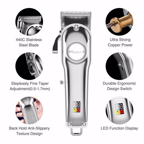 Led Display & Ergonomical Handle: The LED display of haircut clippers clearly shows remaining percentage of battery. This electric hair clippers for men is very comfortable to hold, easy to use and clean even for first-time users.